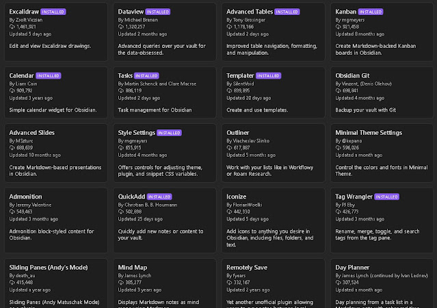 One of my absolutely favorite things is how customizable it is. There are a lot things you can tweak to your liking in stock obsidian like appearance and hotkeys, but the magic happens when you use the community plugins. If the program isn't doing something you would like it to, there is more often than not a plugin which has the fix or the feature you are looking for, and you can install them directly from the app (Fig. 4) . There are some that are TTRPG specific too, but I don't really use those as they are more 5e focused. My favorite plugins have added kanban boards (Kanban), functional drawings that you can link to specific notes (Excalidraw, which is great for maps), tables that automatically add entries if they contain certain information (Data view), and customizable templates that can auto populate information that you enter frequently (Templates, which is native, or Templater).